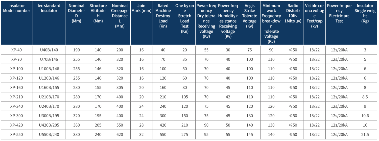 Increasing creepage distance: By connecting multiple disc-shaped insulators in series to form an insulator string, the path length (i.e. creepage distance) that current needs to pass between the wire and the tower can be significantly increased, thereby improving the overall insulation level of the line and preventing flashover accidents caused by high humidity or surface pollution.
