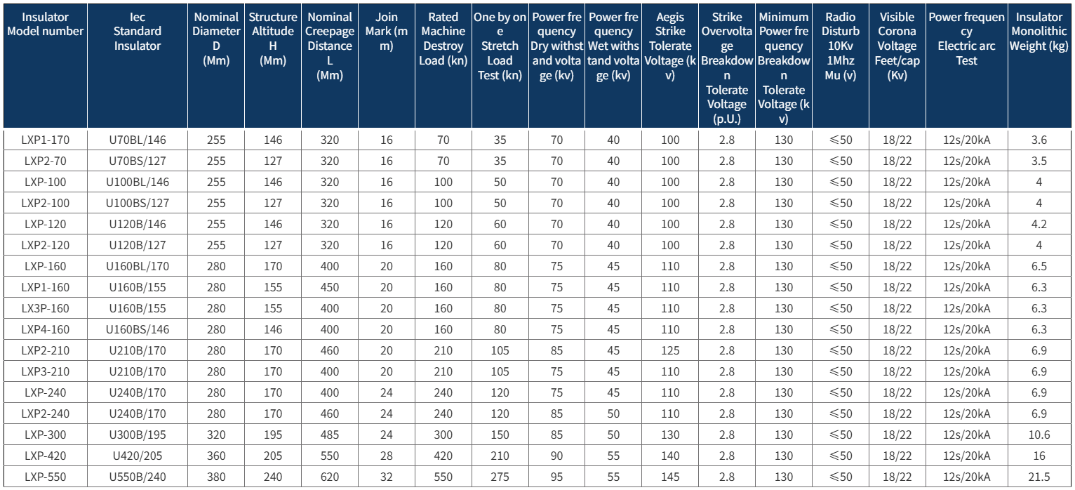 Suspension conductor: Glass insulators securely suspend heavy transmission lines on towers through metal attachments (iron caps and steel feet) at both ends, and withstand various mechanical loads such as the weight of the conductor, wind, ice and snow loads, and impact forces generated during line faults.